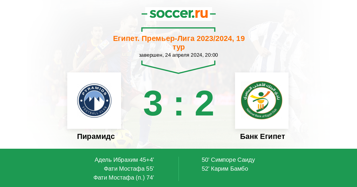 45+4' (1:0) Адель Ибрахим (30) (Собхи Рамадан (10))