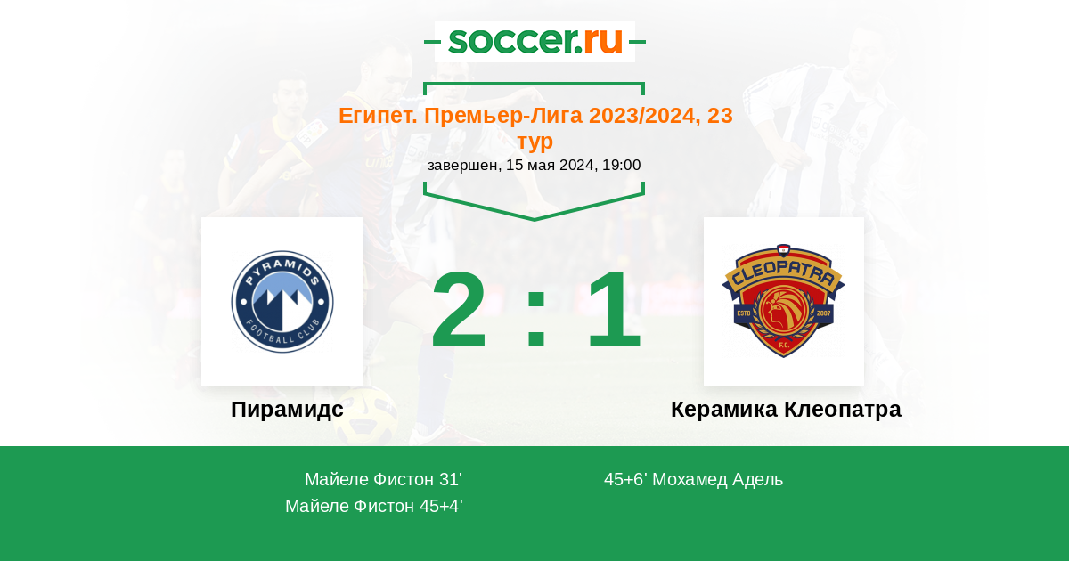 31' (1:0) Майеле Фистон (9) (Моханад Мостафа Лашин (14))