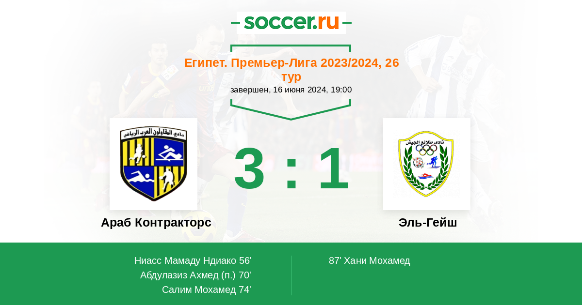 87' (3:1) Хани Мохамед (26) (Тарек Карим (11))