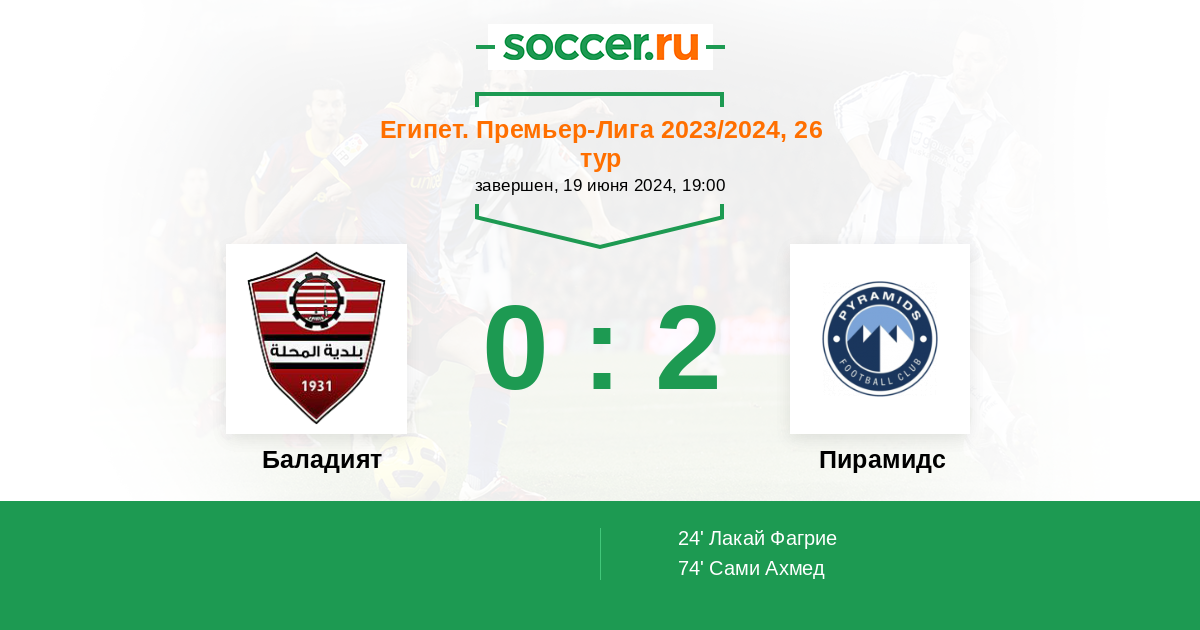 24' (0:1) Лакай Фагрие (23) (Хамди Мохамед (21))