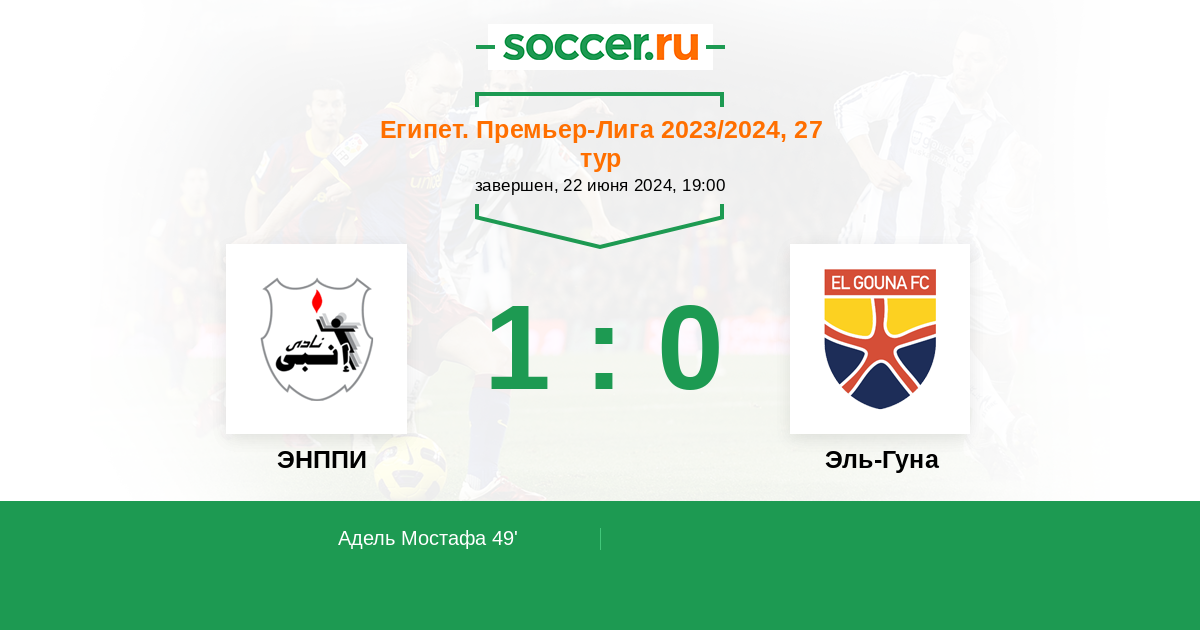49' (1:0) Адель Мостафа (30) (Насер Мохамед (17))