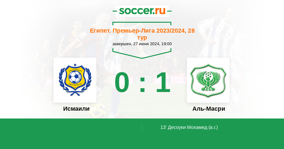 13' (0:1) Автогол Десоуки Мохамед (3)