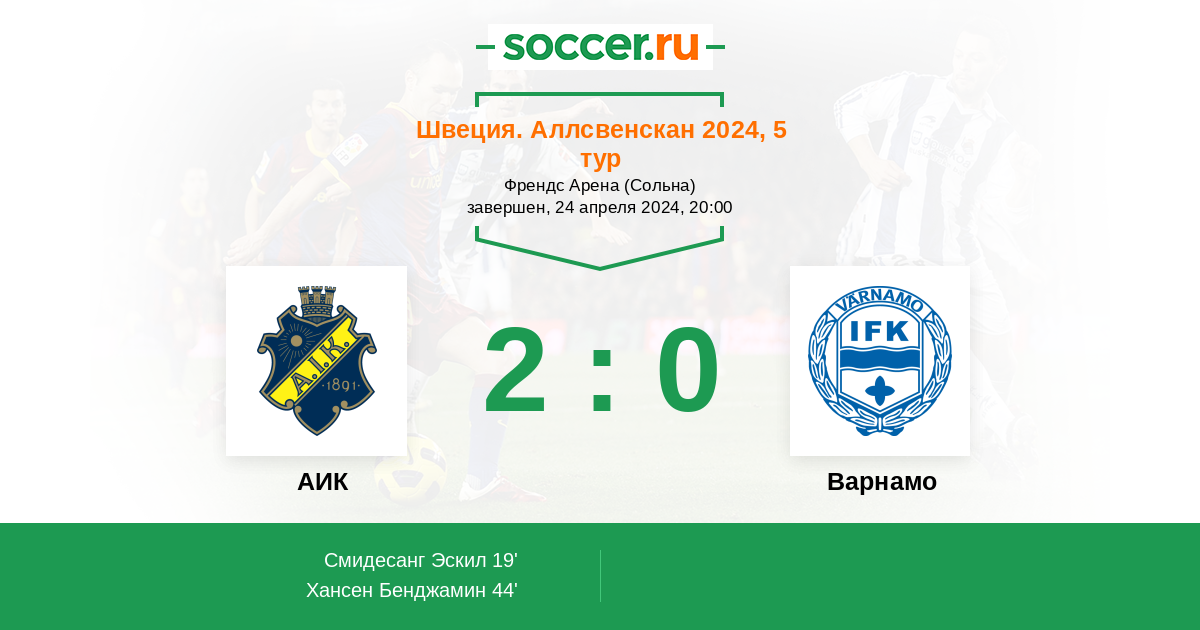 Запасные: 7 Йоханссон Карл (с 46'), 32 Билалович Кенан (с 71'), 19 Бустос Марко (с 81'), 8 Кенндал Уильям (с 81'), 9 Калу Джонбоско, 23 Котто Сэмуел, 31 Михаил Давид, 2 Рапп Йохан, 1 Рашид Джонатан
