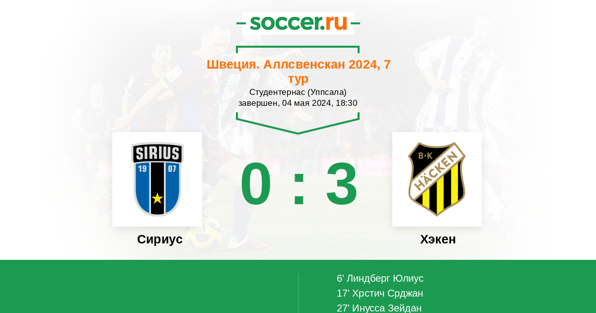 6' (0:1) Линдберг Юлиус (11) (Густафсон Симон (14))