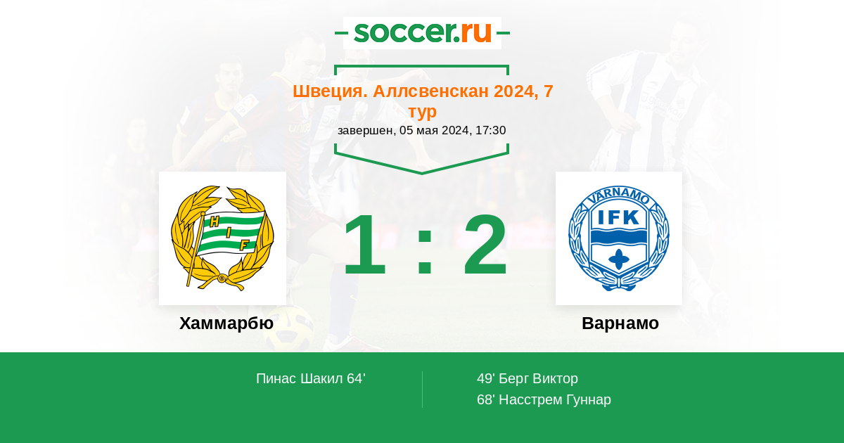 49' (0:1) Берг Виктор (3) (Энгвалль Густав (14))