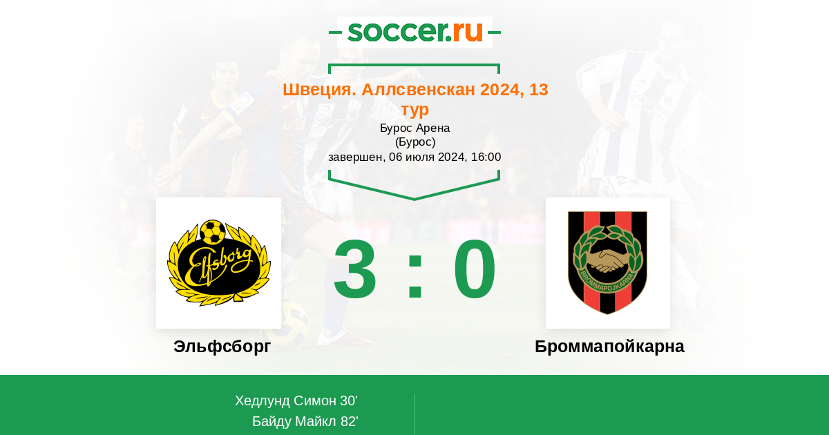 30' (1:0) Хедлунд Симон (15) (Байду Майкл (10))