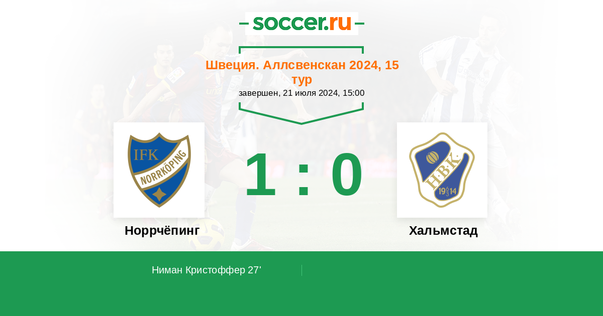 27' (1:0) Ниман Кристоффер (5) (Траустасон Арнор (9))