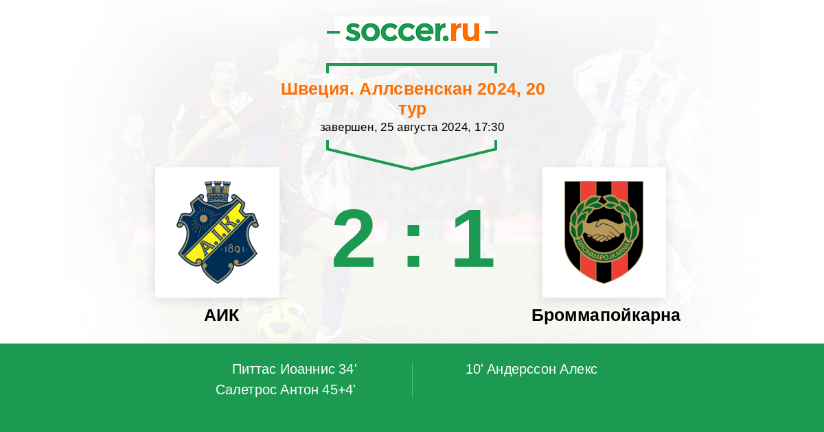 10' (0:1) Андерссон Алекс (21) (Одефальк Вильмерк (10))