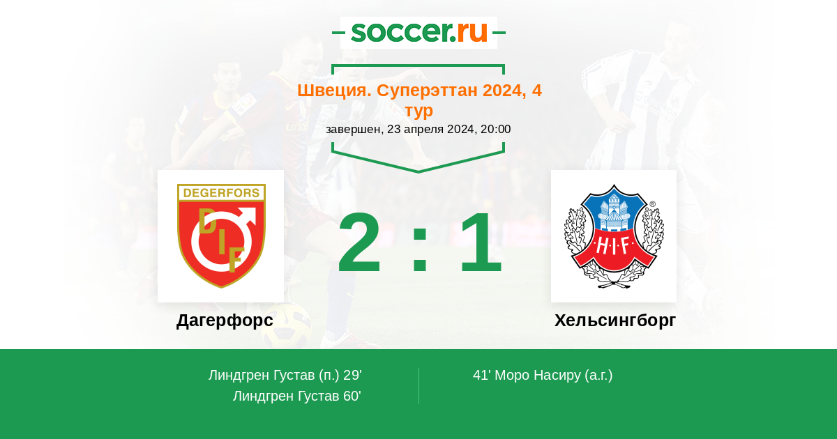 Запасные: 20 Ольссон Ким (с 75'), 24 Бергман Даниэль (с 75'), 25 Хелльборг Адам (с 75'), 33 Мухсин Амар (с 83'), 21 Сванбек Адриан (с 86'), 5 Бенгсттон Саймон, 30 Арвидссон Нилс