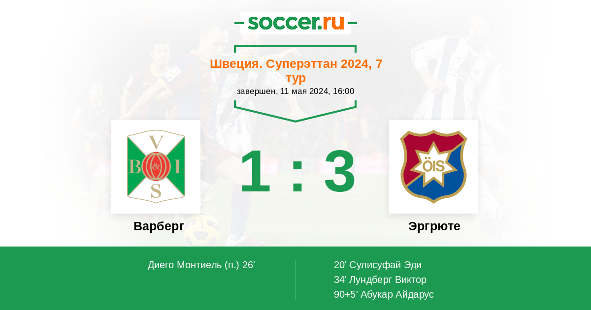 34' (1:2) Лундберг Виктор (9)