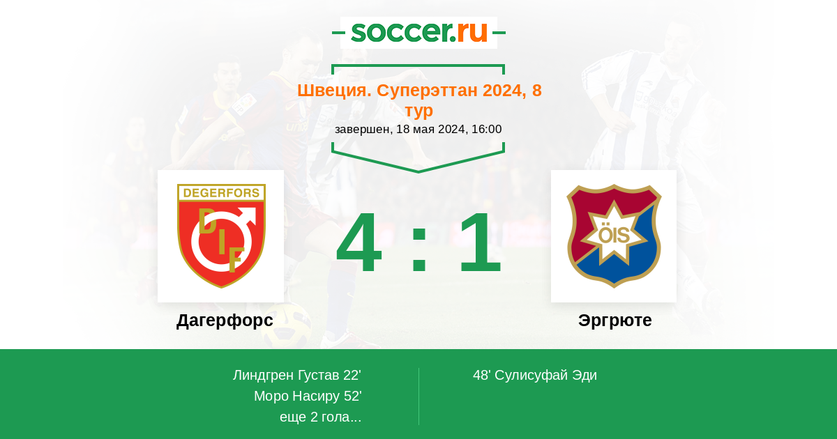 22' (1:0) Линдгрен Густав (9)
