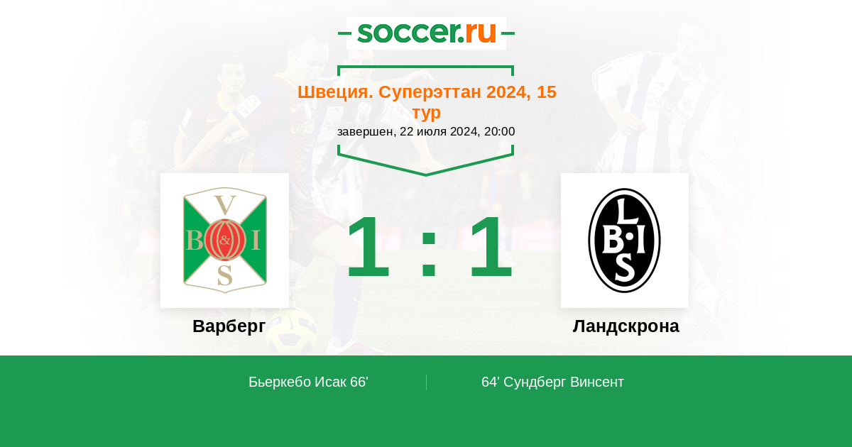 66' (1:1) Бьеркебо Исак (11)