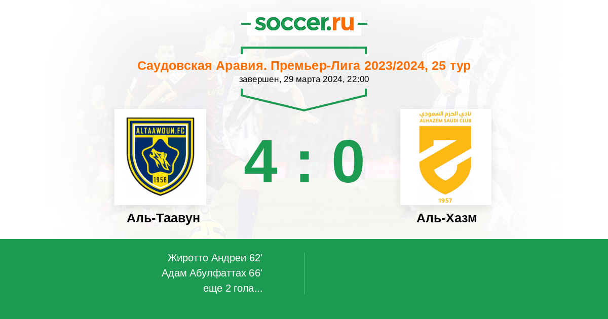 66' (2:0) Адам Абулфаттах (88) (Аль-Куваукиби Мохаммед (22))