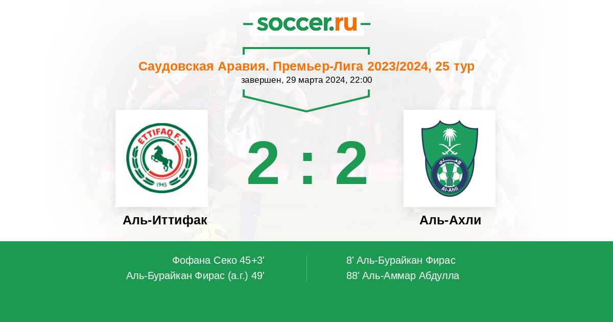 49' (2:1) Автогол Аль-Бурайкан Фирас (20)