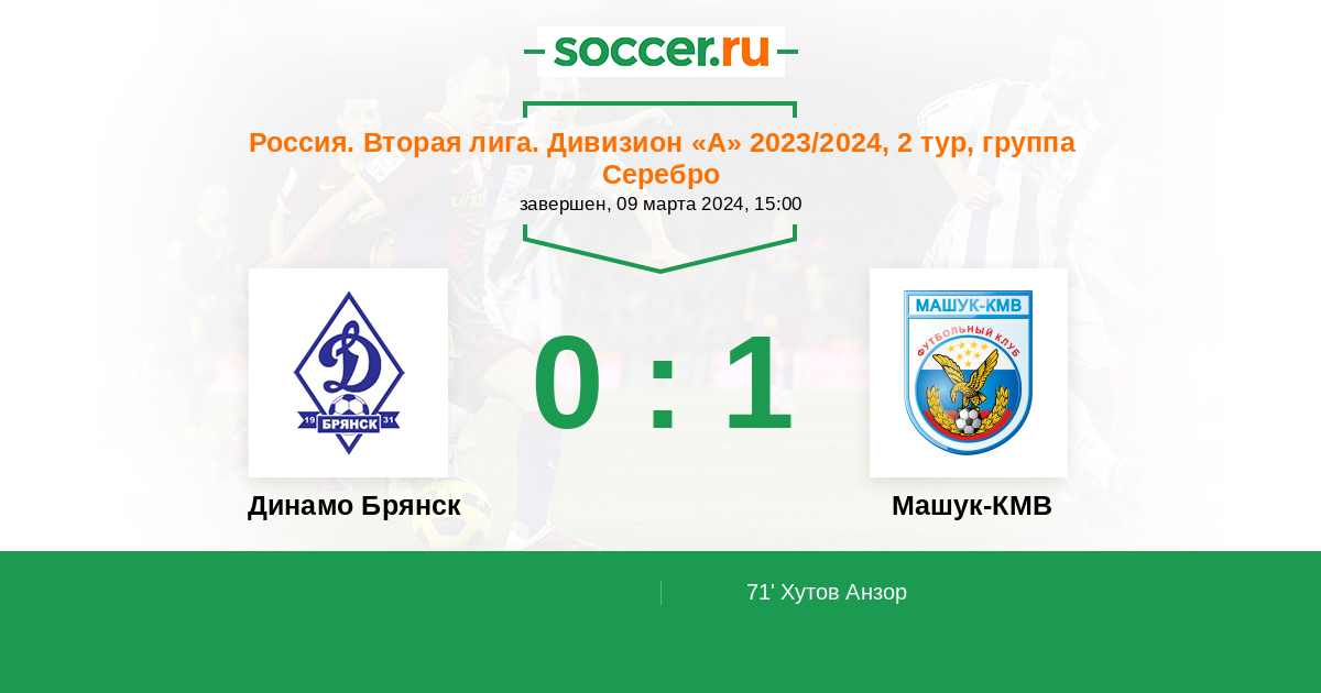71' (0:1) Хутов Анзор (11)