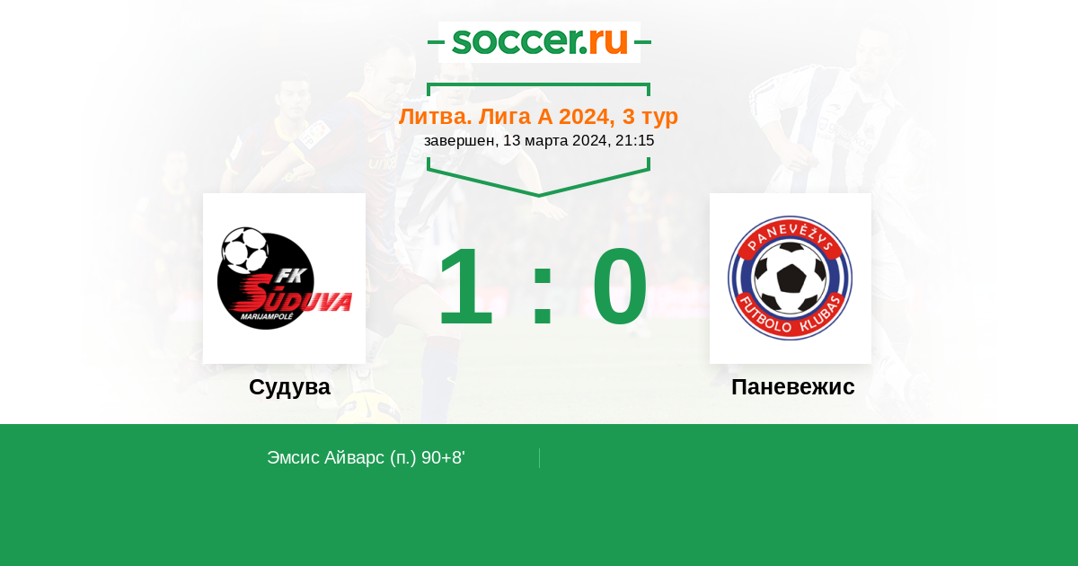 90+8' (1:0) Эмсис Айварс (10)