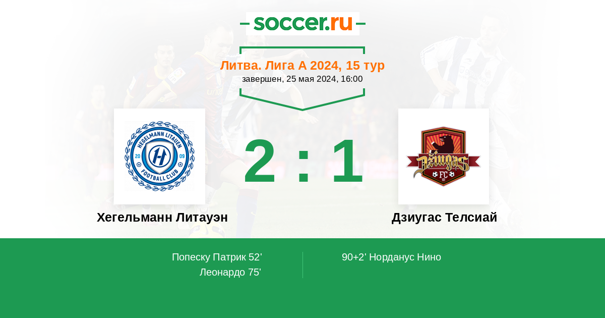 Запасные: 16 Пилипавичус Аиримас (с 46'), 77 Стулга Ауримас (с 79'), 7 Василиюскас Мартинас (с 89'), 4 Мартинкус Арнас, 14 Гирдваинис Гвидас, 99 Гаудишиус Викинтас