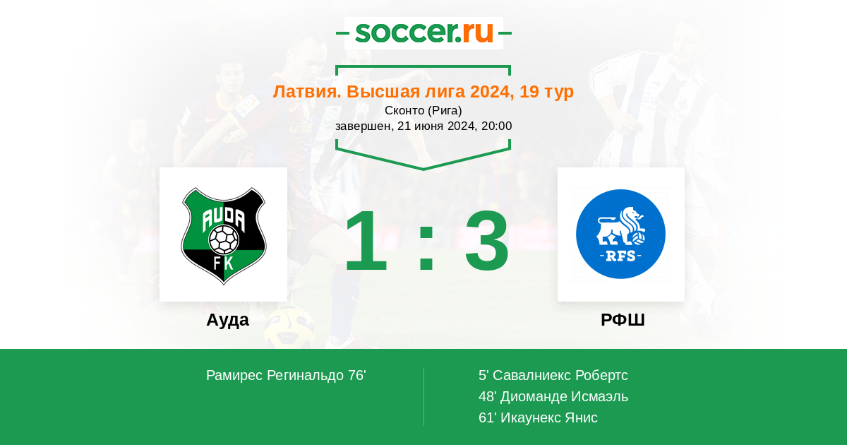 Запасные: 21 Мельникс Денис (с 60'), 82 Паблиньо (с 69'), 11 Огуннийи Абиодун (с 69'), 71 Рубенис Оскарс (с 83'), 77 Камара Усман, 5 Минкевичс Иво, 6 Карклинс Крисс, 16 Лукас Рамос, 1 Стуринш Райво