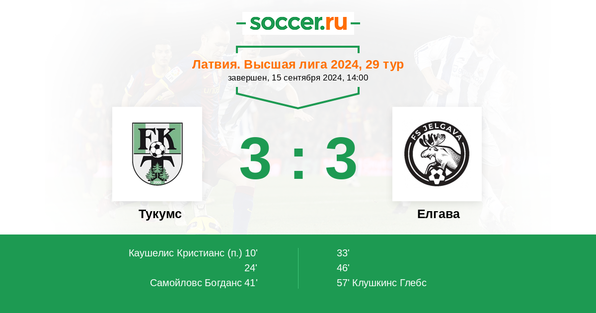 41' (3:1) Самойловс Богданс (10)