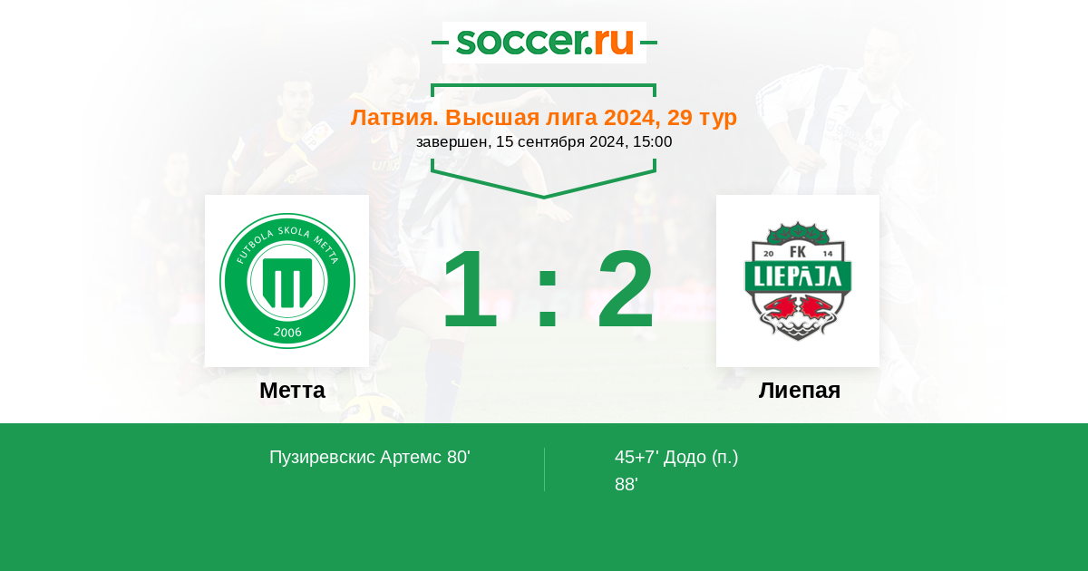 Запасные: 9 Багдасарян Арам (с 46'), 18 Аганспахич Альмир (с 70'), 8 Фолл Папе (с 77'), 7 Дуду Папе (с 85'), 14 Тиденбергс Эдуардс, 84 Лазаревс Владислав, 5 Чиковани Николоз, 2 Зиемелис Рудольфс