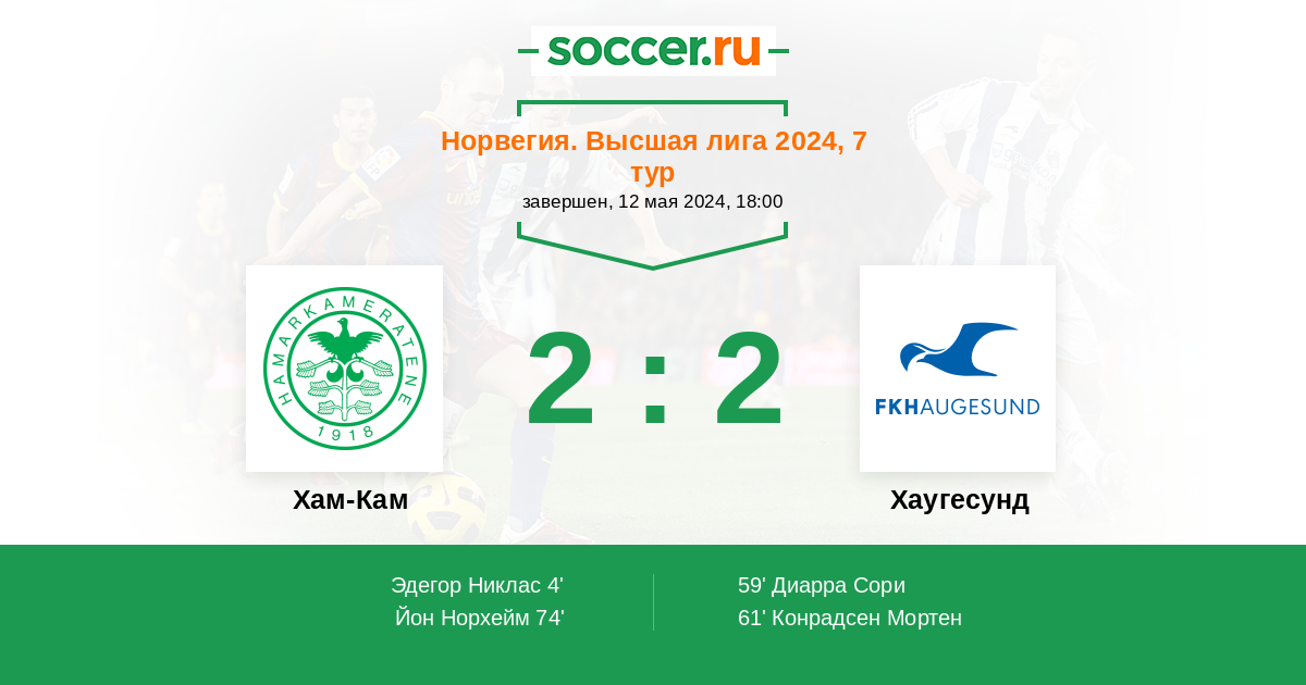 74' (2:2) Йон Норхейм (6) (Куртович Уильям Альбин (19))