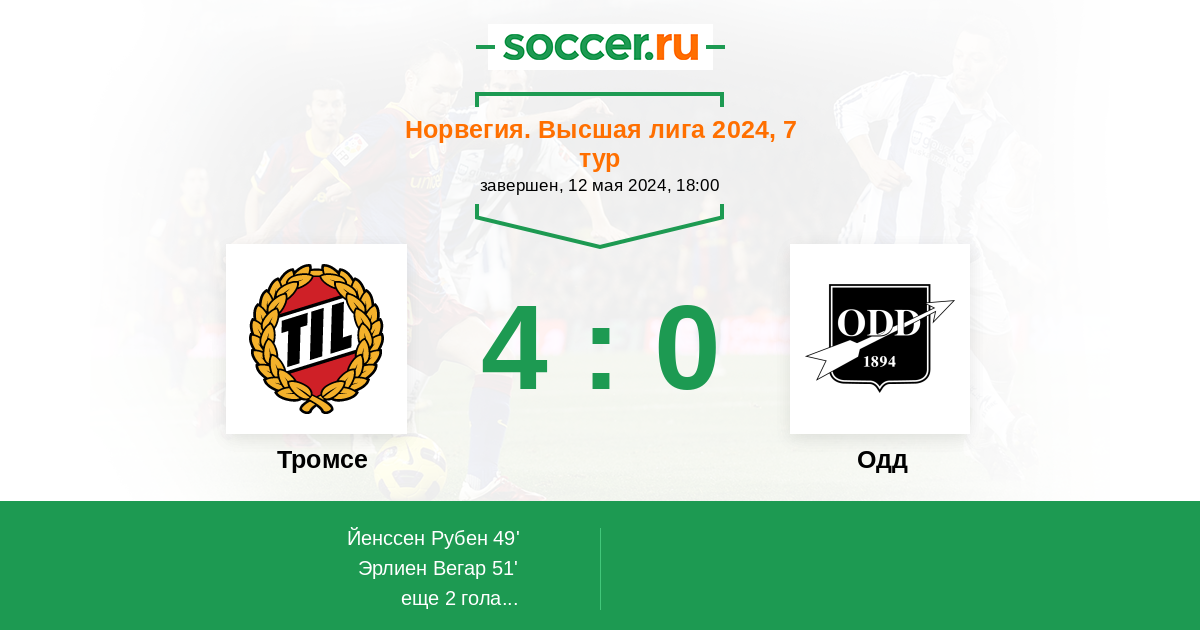 51' (2:0) Эрлиен Вегар (15) (Йенссен Андерс (5))