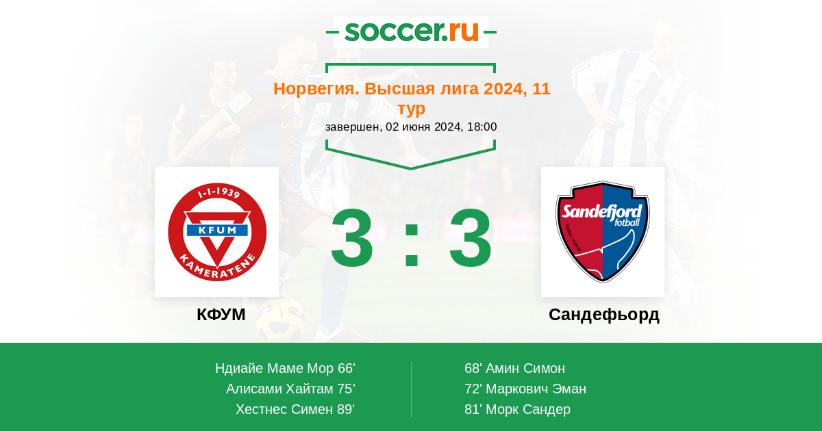 89' (3:3) Хестнес Симен (8) (Хальтвик Теодор (17))