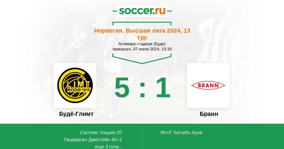 20' (1:0) Салтнес Ульрик (14) (Гронбек Альберт (8))