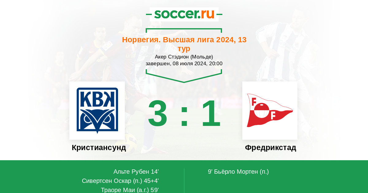 14' (1:1) Альте Рубен (8) (Сивертсен Оскар (37))