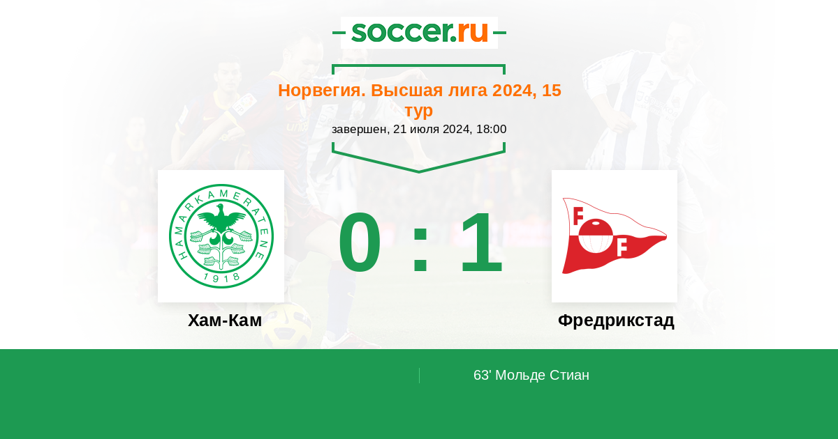 63' (0:1) Мольде Стиан (4) (Меткалф Патрик (12))