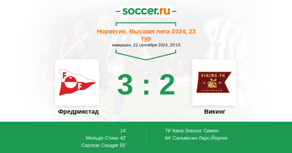 42' (2:0) Мольде Стиан (4) (Магнуссон Жулиус (19))