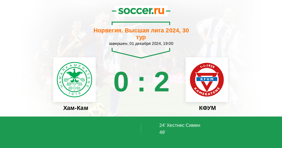 24' (0:1) Хестнес Симен (8)