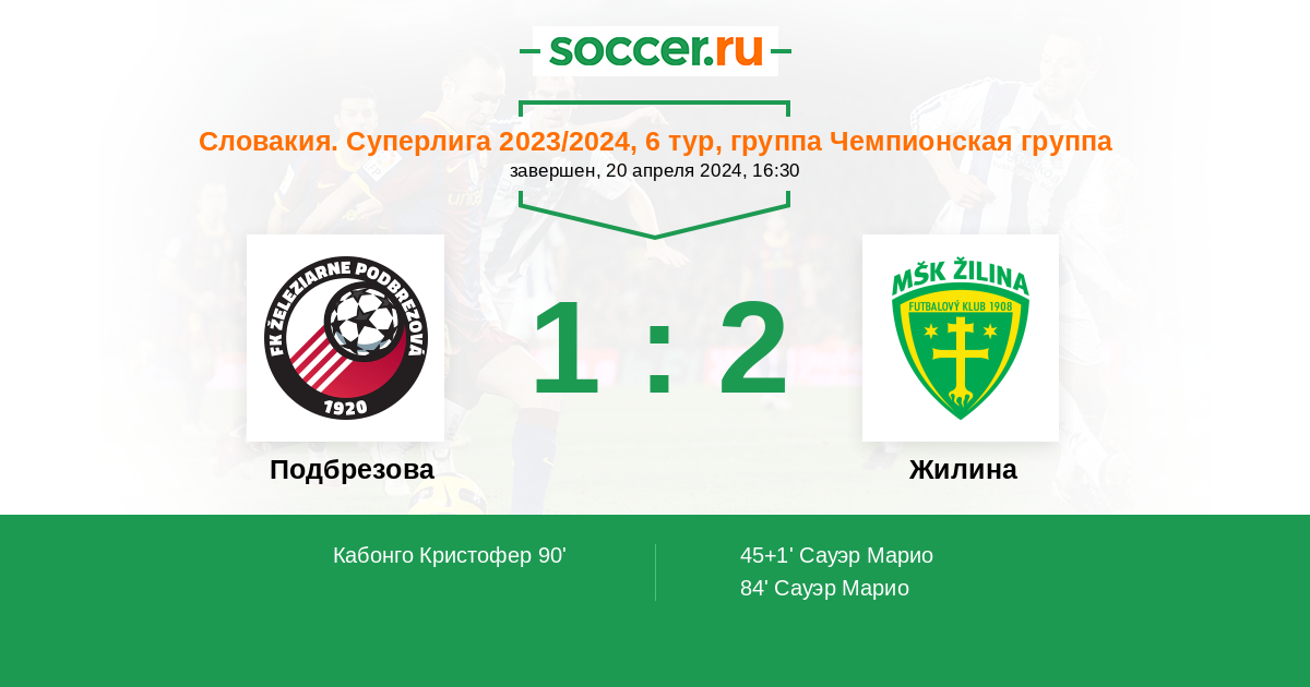 45+1' (0:1) Сауэр Марио (37) (Датко Самуэл (24))