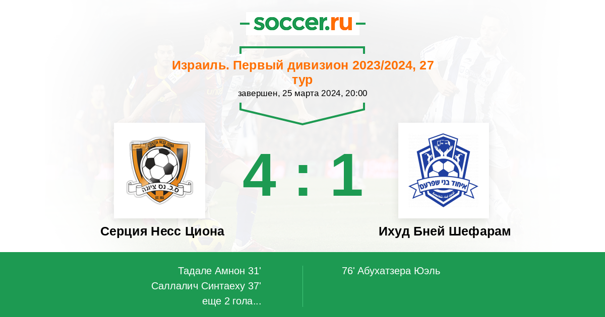 31' (1:0) Тадале Амнон