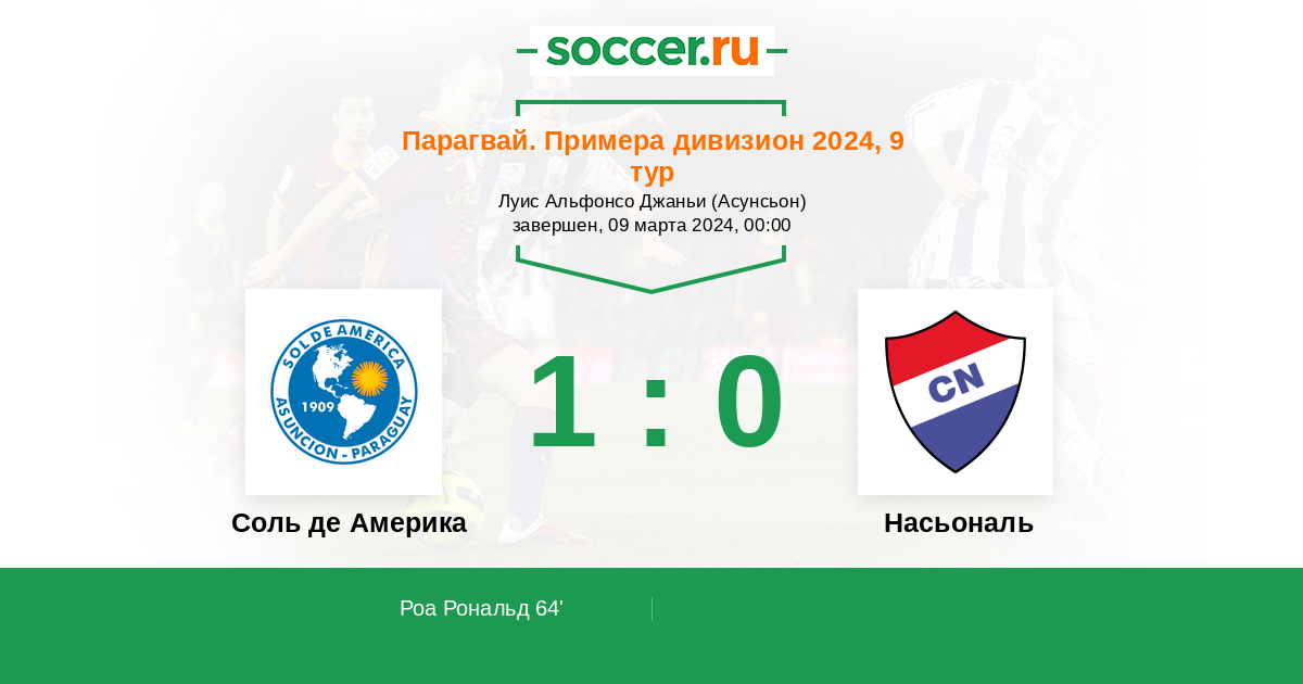 64' (1:0) Роа Рональд (19) (Акоста Марсело (31))