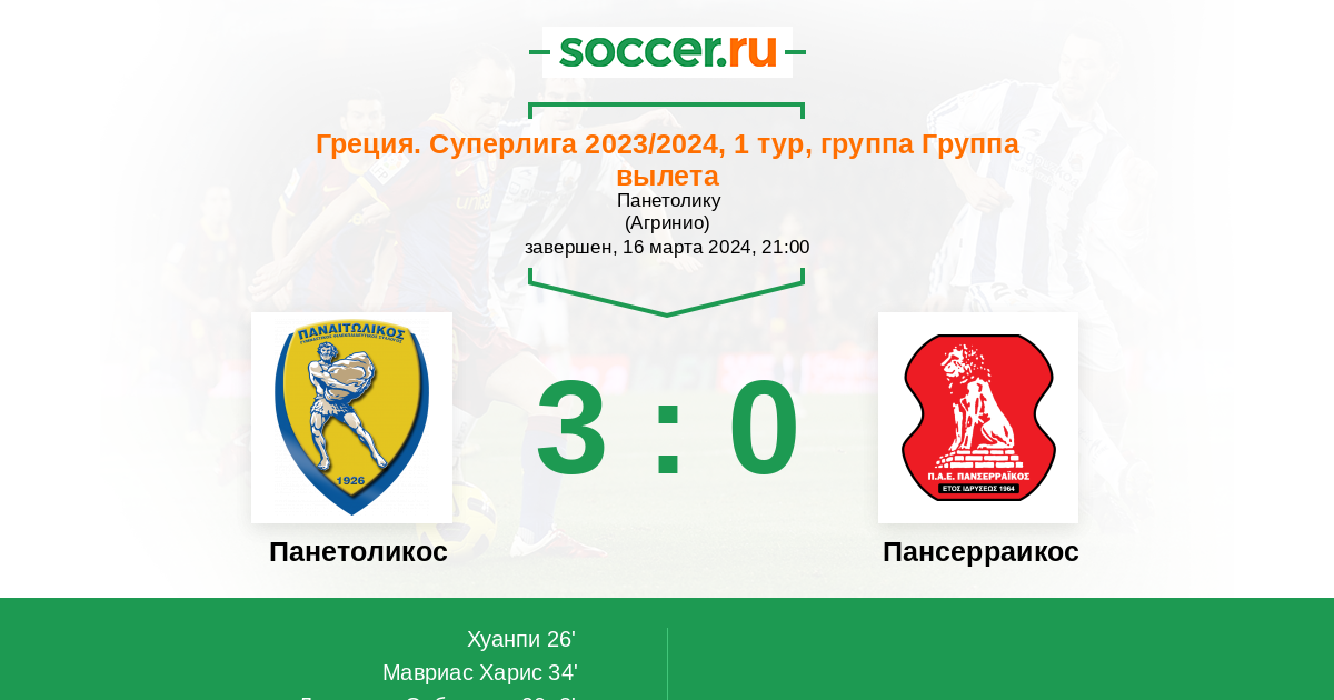 34' (2:0) Мавриас Харис (35) (Силва Педро (24))