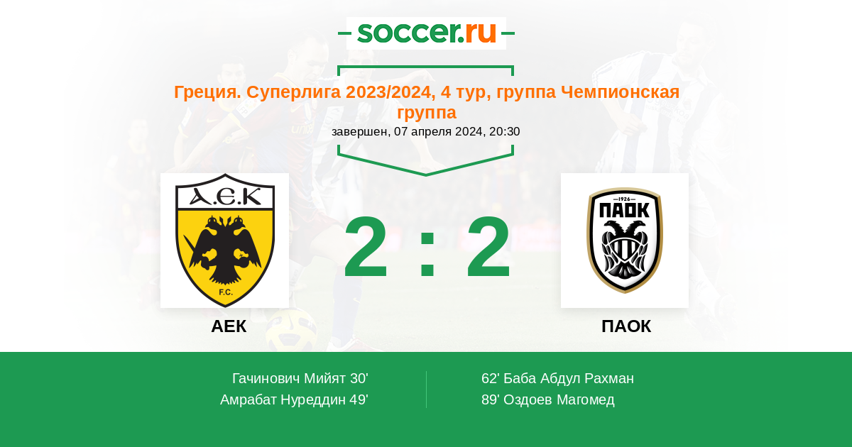 62' (2:1) Баба Абдул Рахман (21) (Константелиас Иоаннис (7))