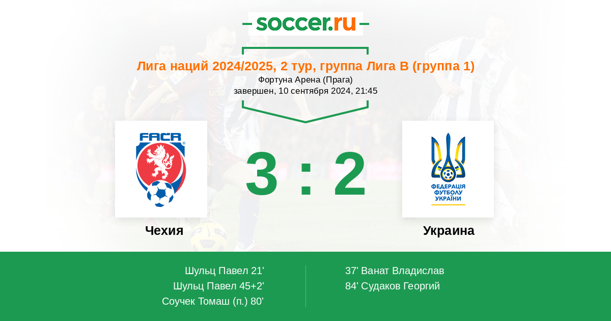Запасные: 20 Лингр Ондржей (с 65'), 9 Гложек Адам (с 66'), 13 Кушей Васил (с 81'), 10 Шик Патрик (с 81'), 21 Крал Алекс (с 89'), 16 Задражил Адам, 23 Маркович Якуб, 11 Чванчара Томаш, 2 Зима Давид, 4 Гранач Робин, 18 Калвач Лукаш