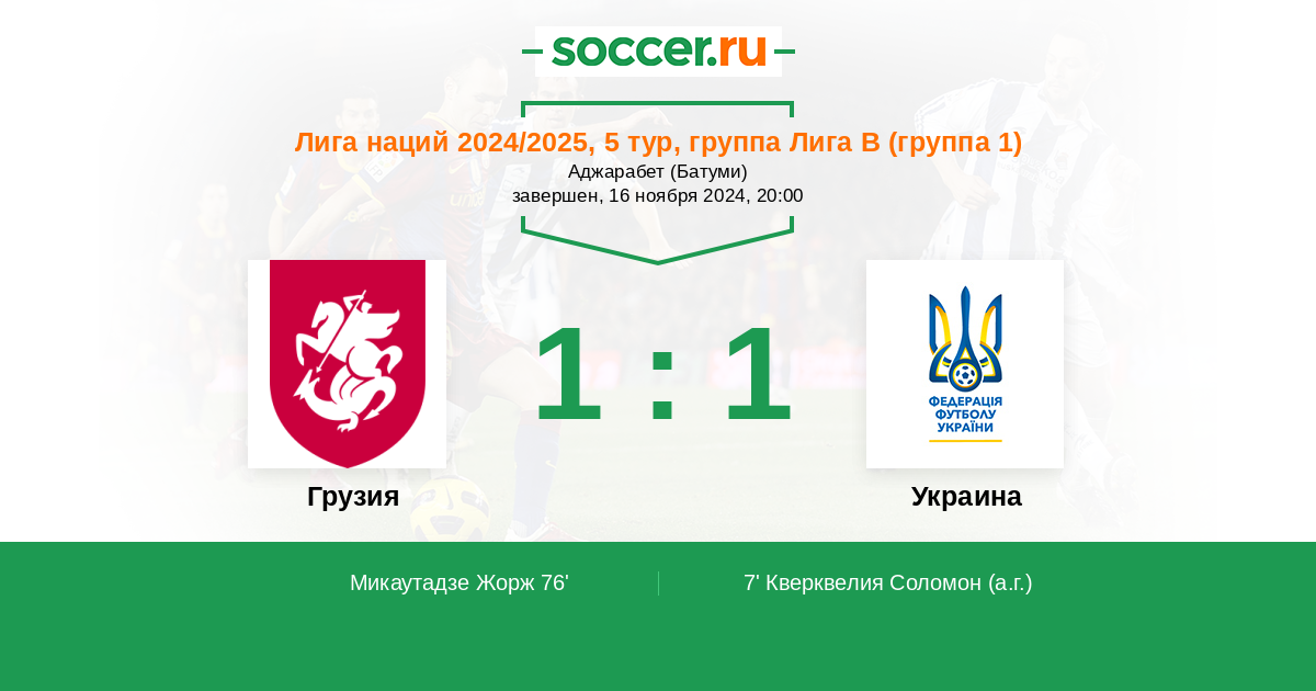 76' (1:1) Микаутадзе Жорж (22) (Кочорашвили Гиорги (6))