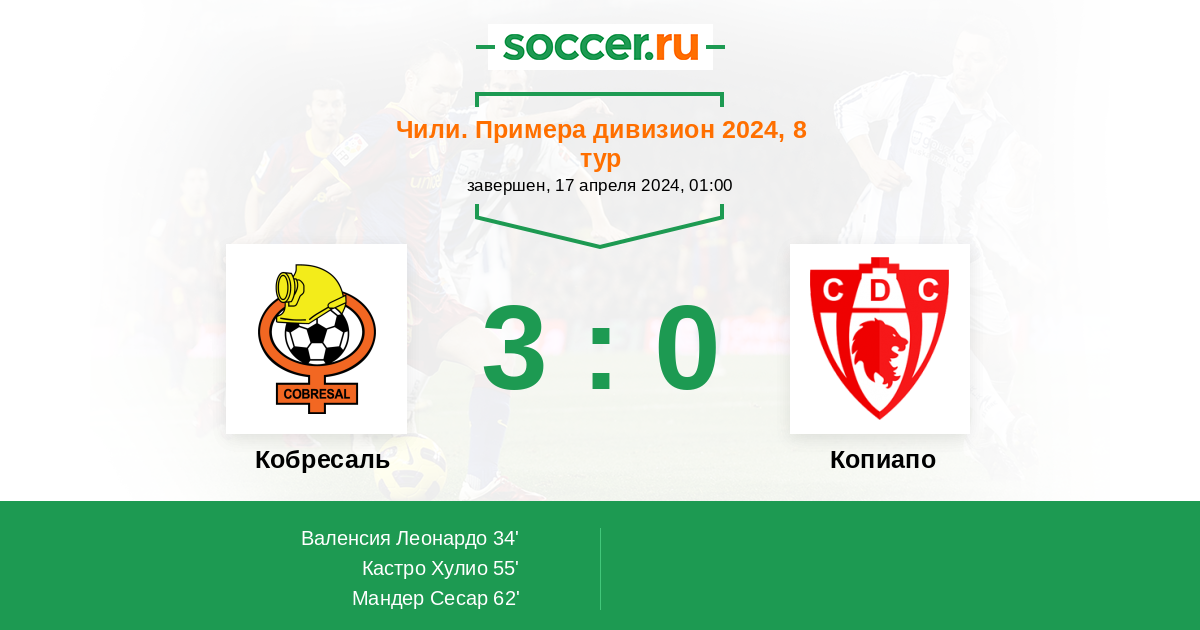 55' (2:0) Кастро Хулио (16) (Пачеко Гильермо (23))