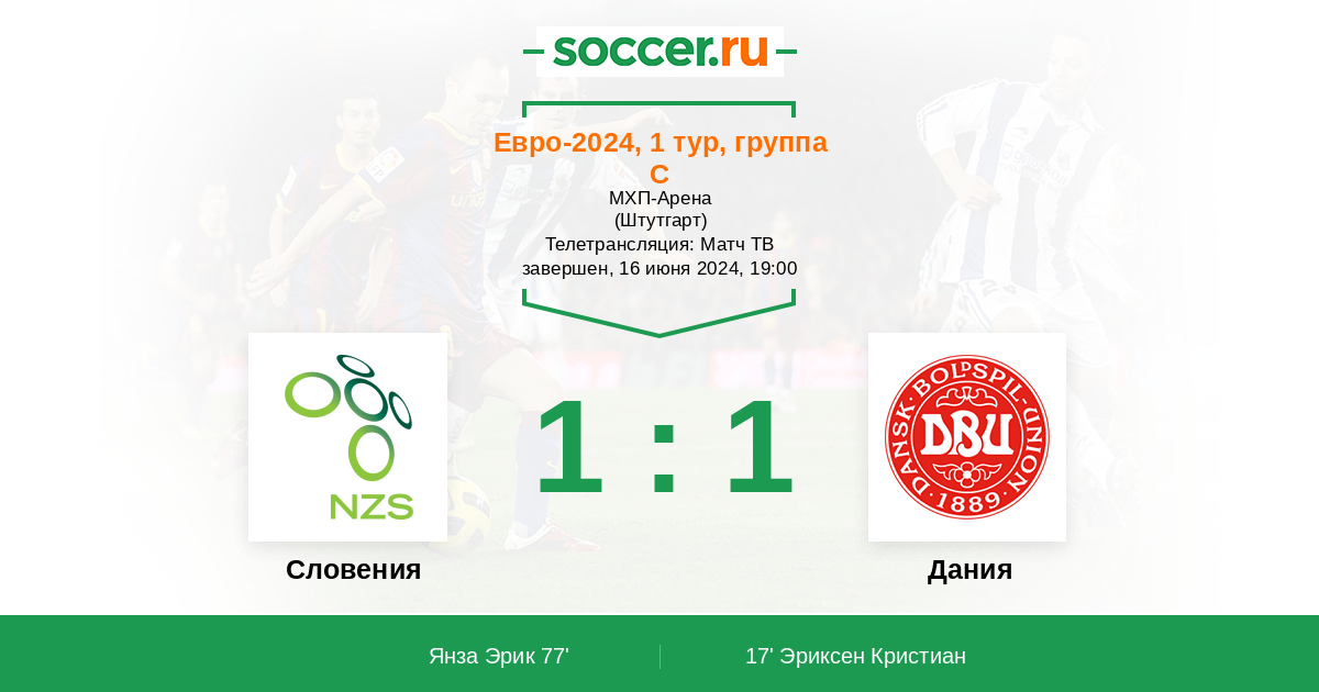 Обе команды провели великолепную подготовку к турниру. Словения так вообще - обыграла Португалию 2:0. В данный момент можно сказать, что команды примерно на одном уровне. Но так уж получилось, что эти команды были в одной группе в рамках отборочного турнира и уже провели 2 встречи (1:1 и 2:1 в пользу Дании).