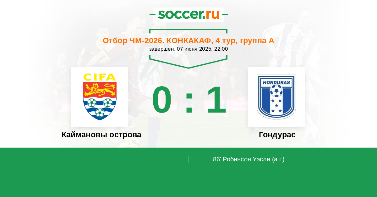 86' (0:1) Автогол Робинсон Уэсли (6)