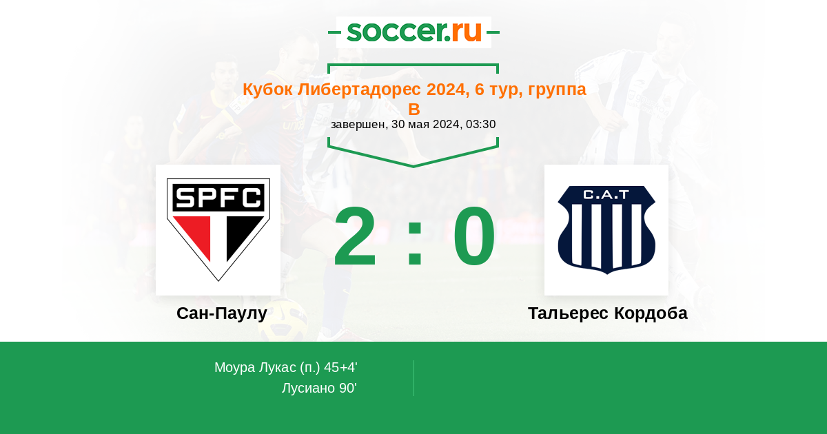 45+4' (1:0) Моура Лукас (7)