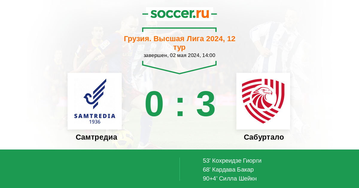 Запасные: 33 Мамацашвили Саба (с 46'), 9 Силла Шейкн (с 65'), 7 Гегучадзе Саба (с 77'), 27 Джаве Флорис (с 77'), 1 Куртанидзе Реваз, 3 Нариманидзе Александр, 6 Дадиани Николоз, 17 Гаприндашвили Александр, 18 Сихарулидзе Ираклий