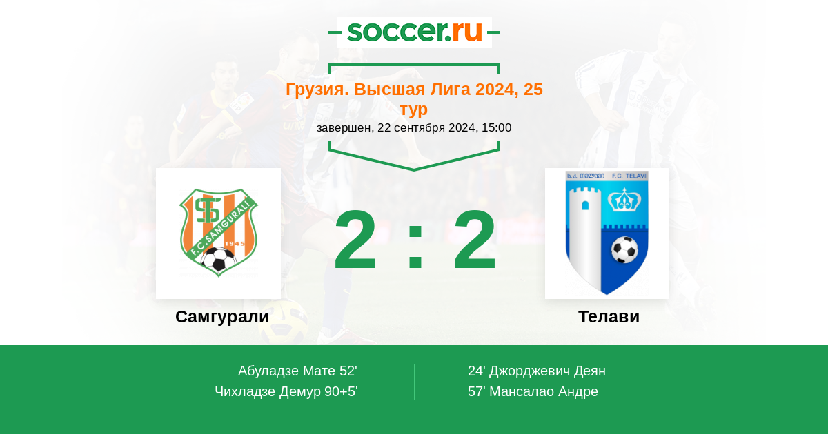 52' (1:1) Абуладзе Мате (3) (Хорхели Лука (11))