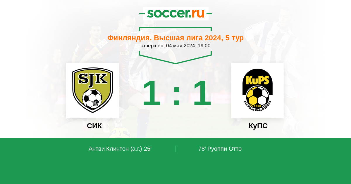 25' (1:0) Автогол Антви Клинтон (25)