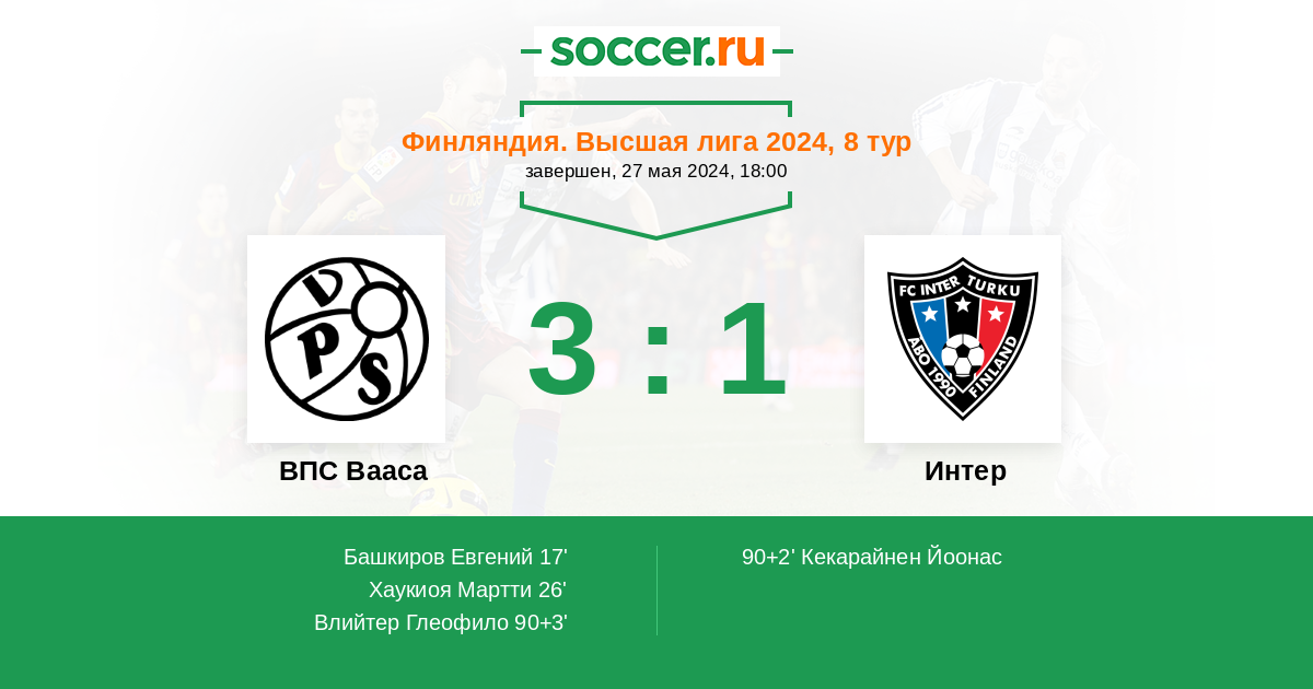 26' (2:0) Хаукиоя Мартти (19) (Райсанен Антти-Вилле (34))