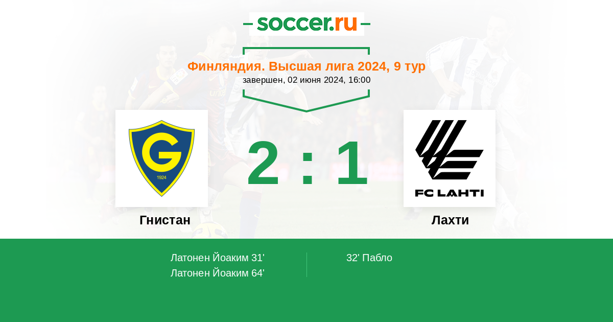 64' (2:1) Латонен Йоаким (10) (Татар Беньямин (31))