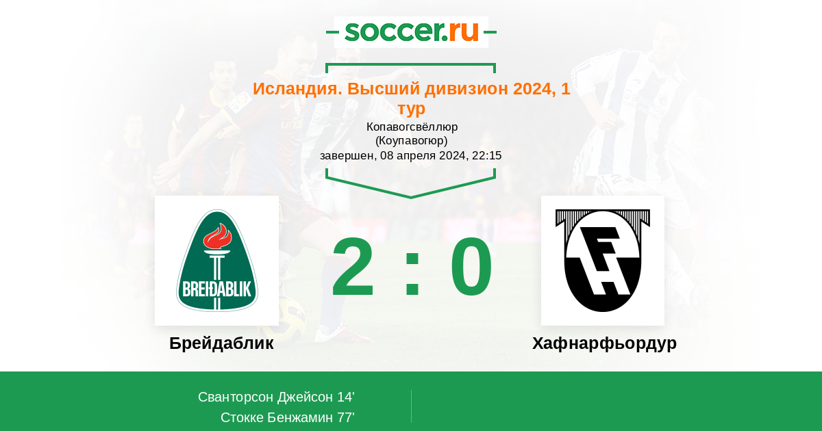 14' (1:0) Сванторсон Джейсон (14) (Эйнарссон Виктор (8))