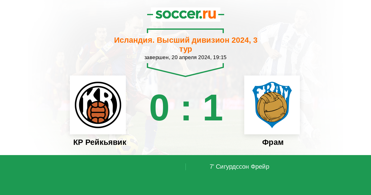 7' (0:1) Сигурдссон Фрейр (25) (Тордарсон Магнус (11))